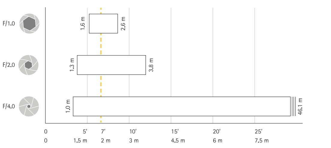 | F/1.0 | 1.6 m | 2.6 m | 1.0 m |