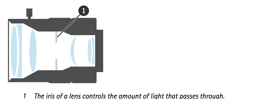 The iris of a lens regulates the size of its opening, also called aperture. This controls the amount of light that passes through, so that an image can be correctly exposed.